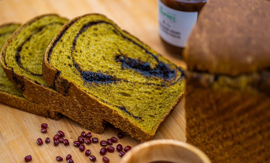 Matcha Sesame Loaf: Levain, Alkaline Water, Artisan Bread Flour, Matcha, Olive Oil, Black Sesame Seeds, Coconut Palm Sugar, Himalayan Pink Salt