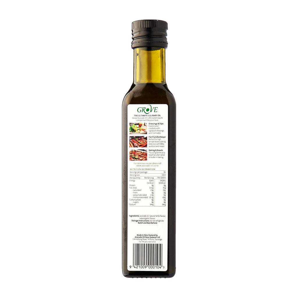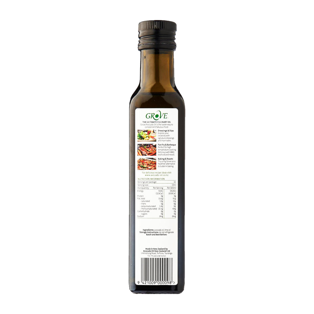 Grove signature extra virgin avocado oil is known the world over for its unique green colour, light consistency and slightly nutty taste. It compliments food perfectly by enhancing the flavour of other foods and adding vibrancy and freshness to dishes.