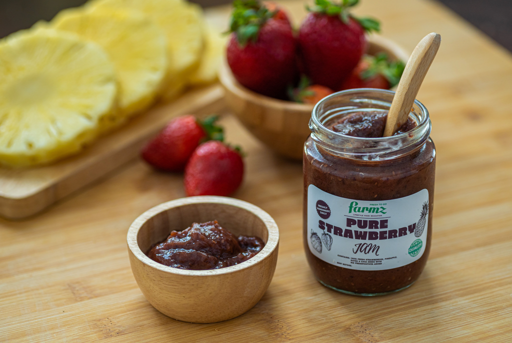 Strawberry Pineapple Jam: Fresh Strawberries, Cold Pressed Pineapple Juice, Dates