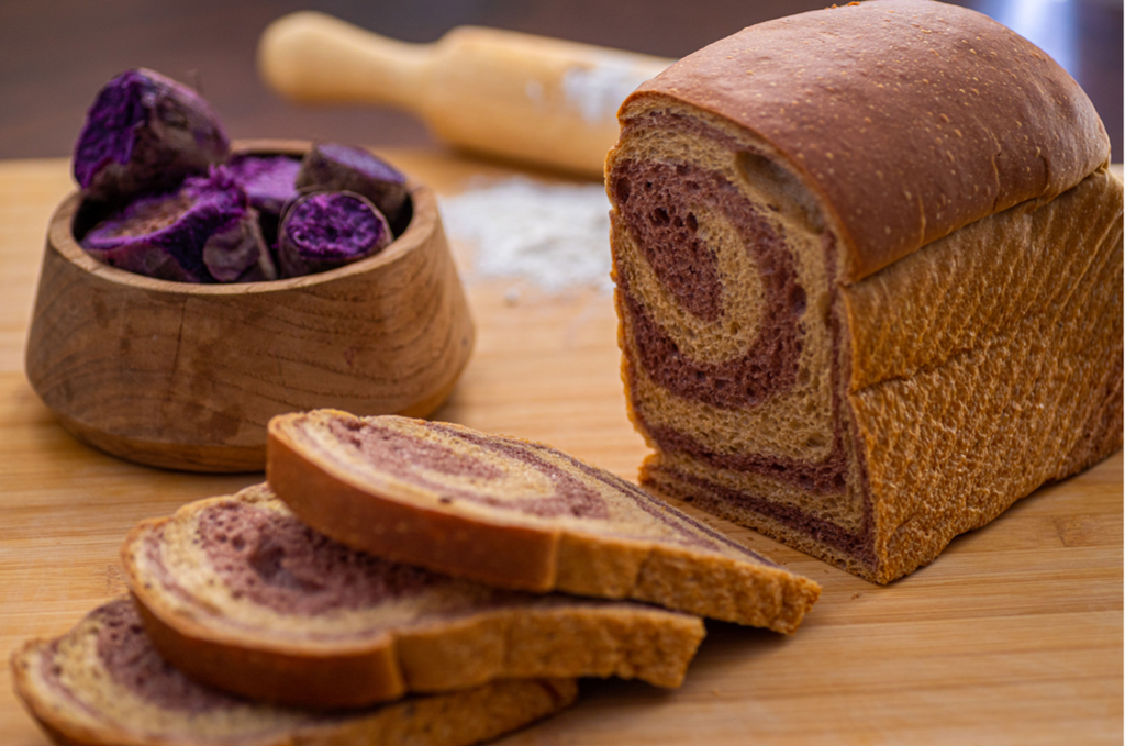 Sweet Potato Loaf: Levain, Alkaline Water, Artisan Bread Flour, Purple Sweet Potato, Coconut Palm Sugar, Himalayan Pink Salt