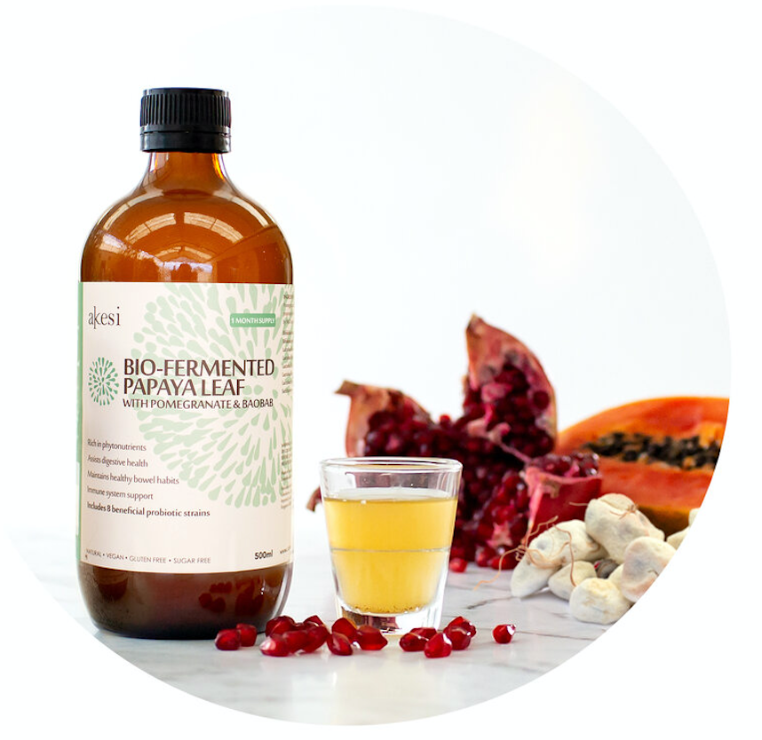 This probiotic tonic will restore and maintain your body's diverse gut microbiota - assist digestive health, maintain healthy bowel habits and provide immune system support. The fermentation of papaya leaves, papaya fruit, pomegranate and baobab creates a final product packed with nutrients more readily available for your body to absorb.